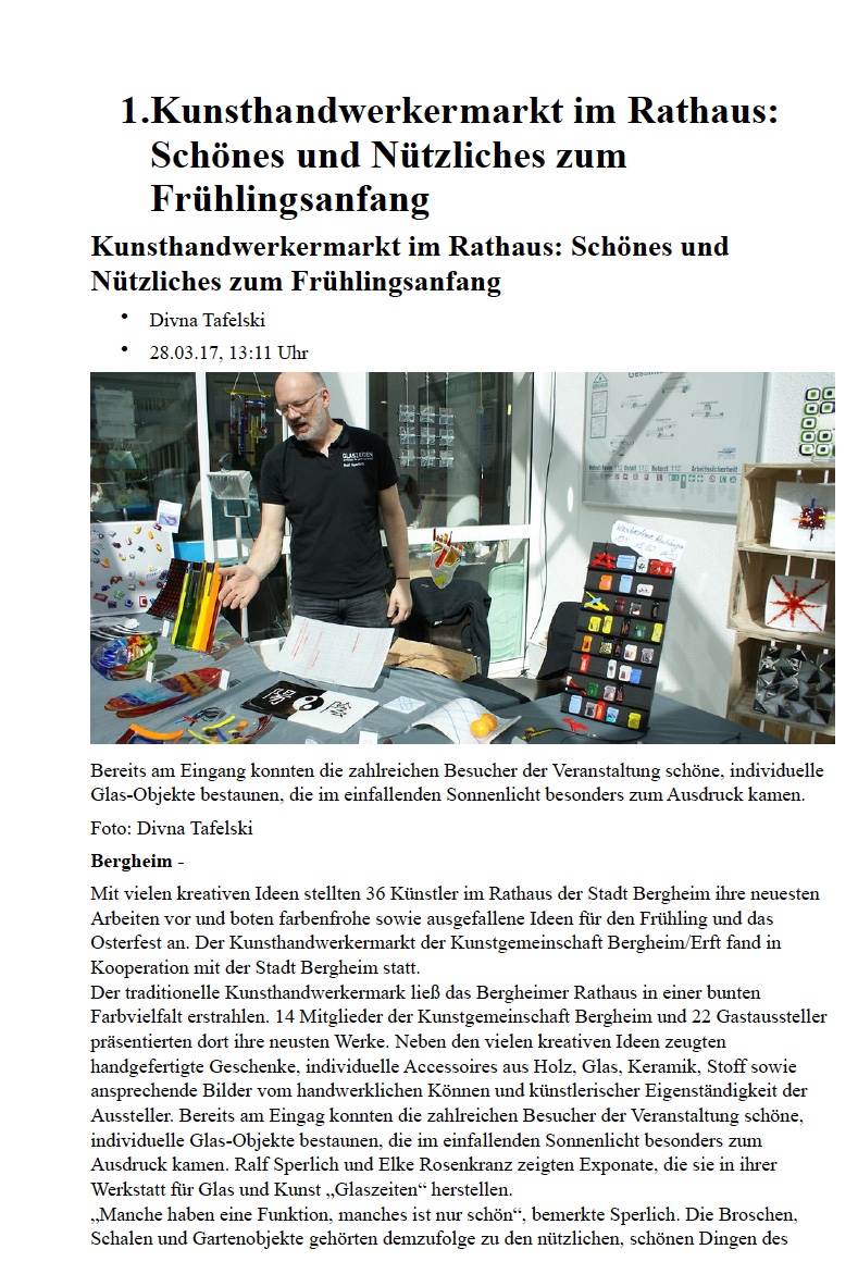 Werbepost Bergheim, Artikel zum Kunsthandwerkermarkt am 25. und 26. März 2017